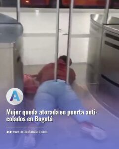 Bogotá, Colombia – 16 de enero de 2024 – Una mujer quedó atorada en una puerta anti-colados del sistema TransMilenio en Bogotá, en un incidente que quedó captado en video.