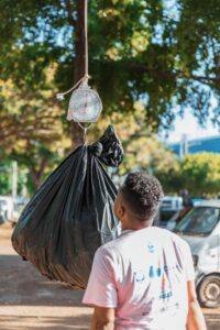 Las botellas recolectadas pasarán a la Fundación Botellas de Amor, la cual transforma los residuos plásticos flexibles en mobiliario urbano, tales como parques infantiles.
