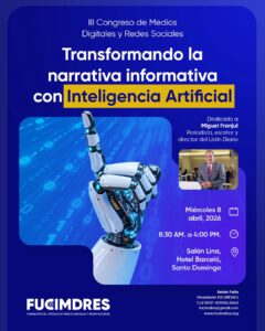 Santo Domingo. – La Fundación del Círculo de Medios Digitales y Redes Sociales (FUCIMDRES), presidida por el periodista Kelvin Faña, anunció la realización de la tercera edición de su Congreso de Medios Digitales y Redes Sociales, un encuentro que este año se desarrollará bajo el lema “Transformando la narrativa informativa con Inteligencia Artificial”. El evento reunirá a comunicadores, líderes digitales, académicos y profesionales de la industria con el fin de analizar los profundos cambios que atraviesa el ecosistema informativo.